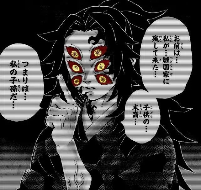 Kokushibo é um membro das Doze Demônios da Lua, mantendo a posição da Lua Superior Um, sendo o demônio mais poderoso com exceção do próprio Muzan. Antes de se tornar um Demônio, sua identidade humana era Michikatsu Tsugikuni um antigo Caçador de Demônios e o irmão gêmeo mais velho de Yoriichi Tsugikuni. Ele também é o ancestral de Muichiro Tokito.